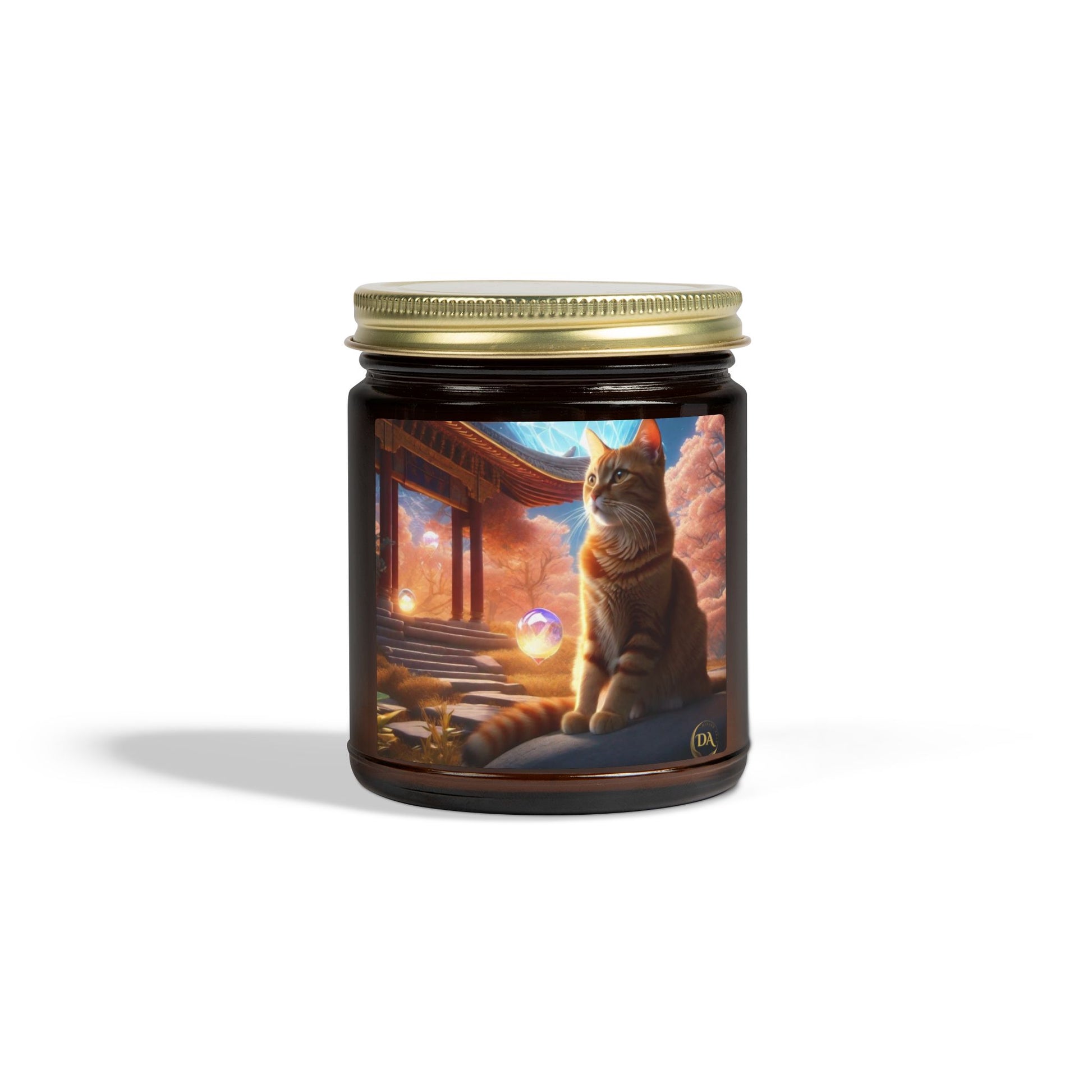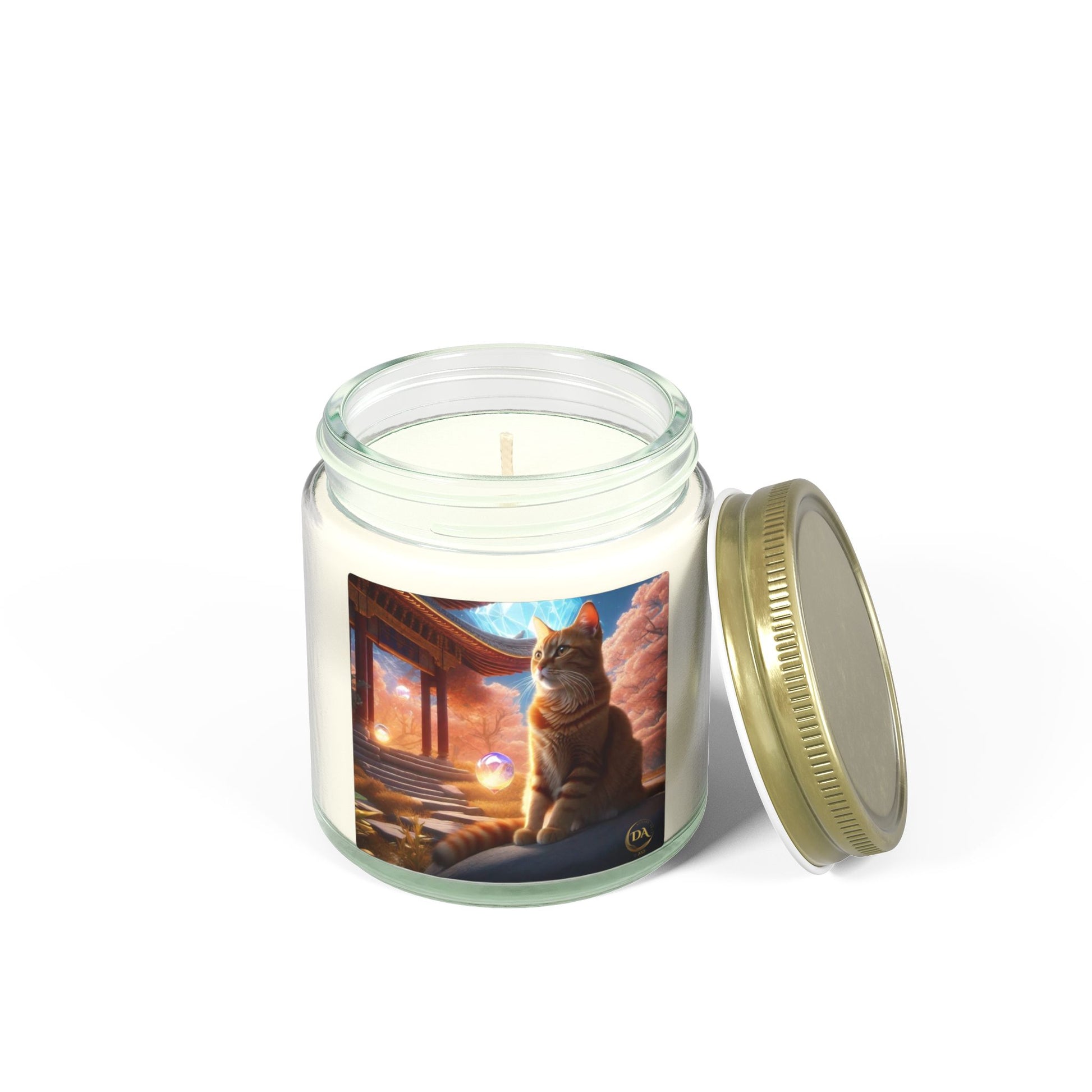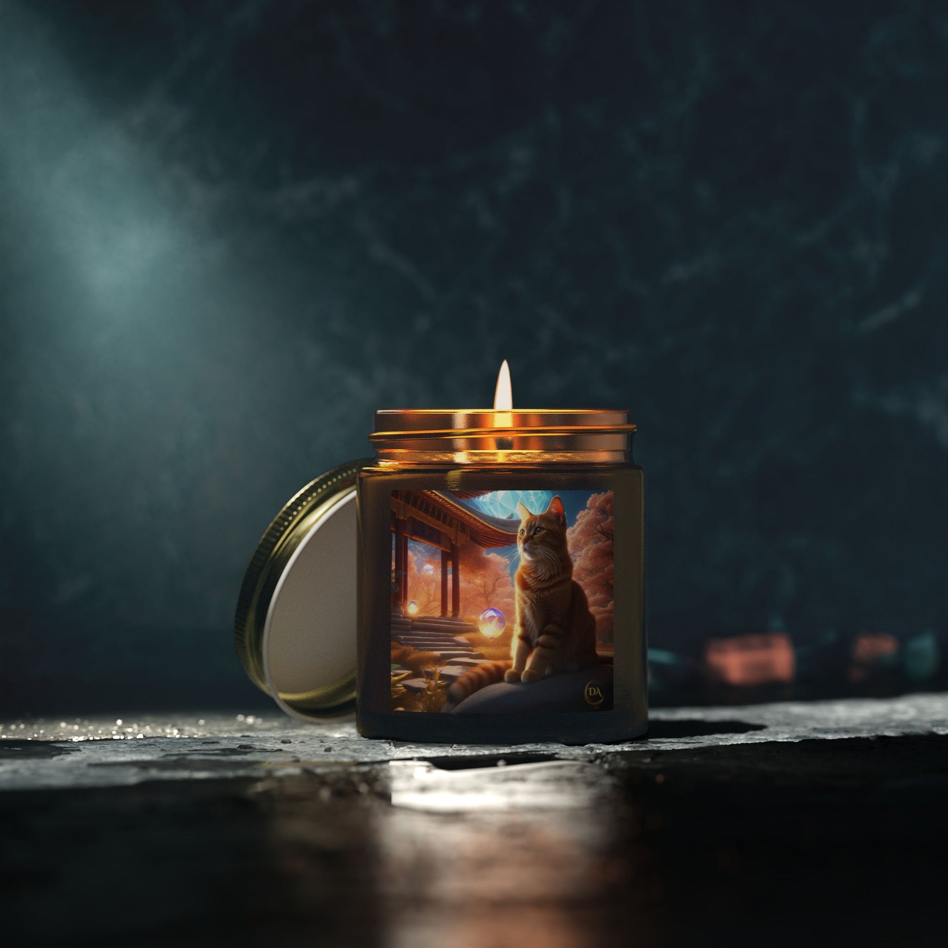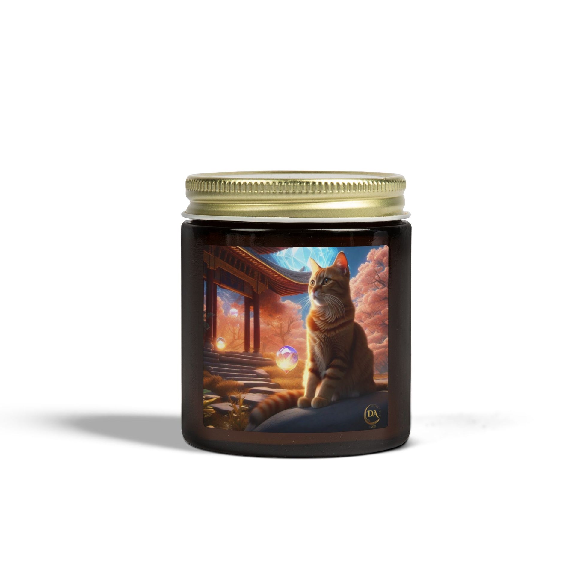 Premium Coconut Apricot Wax Scented Candles, Various Floral & Spice Fragrances (4oz), Spiritual Christmas Holiday Cat Lover Pet Gift, Ginger Tabby Cat Buddhist Diamond Sutra Temple Art, by Divine Arts