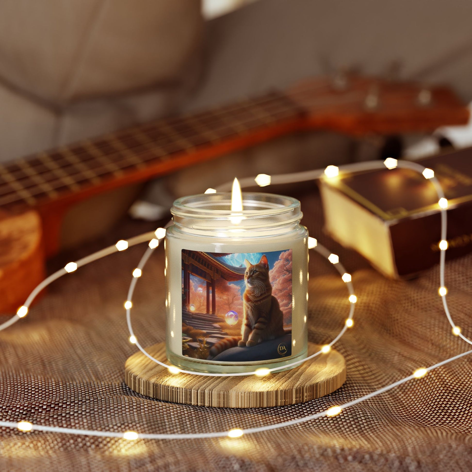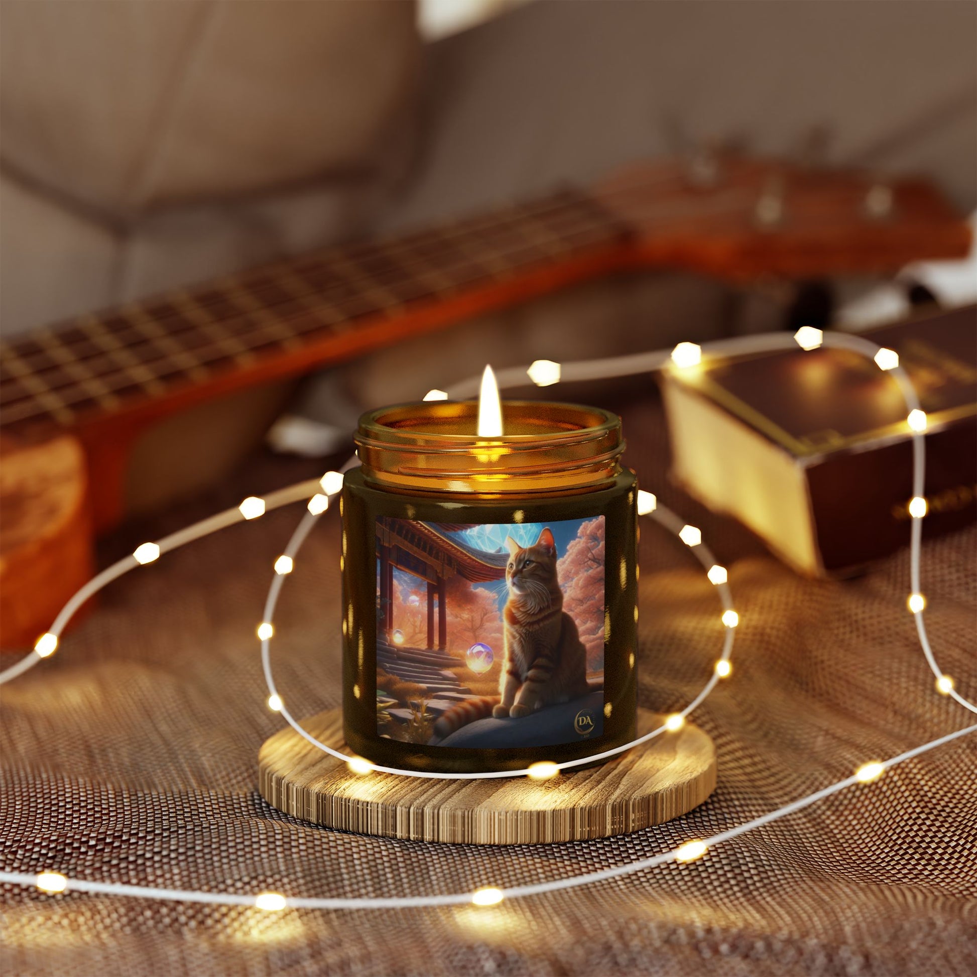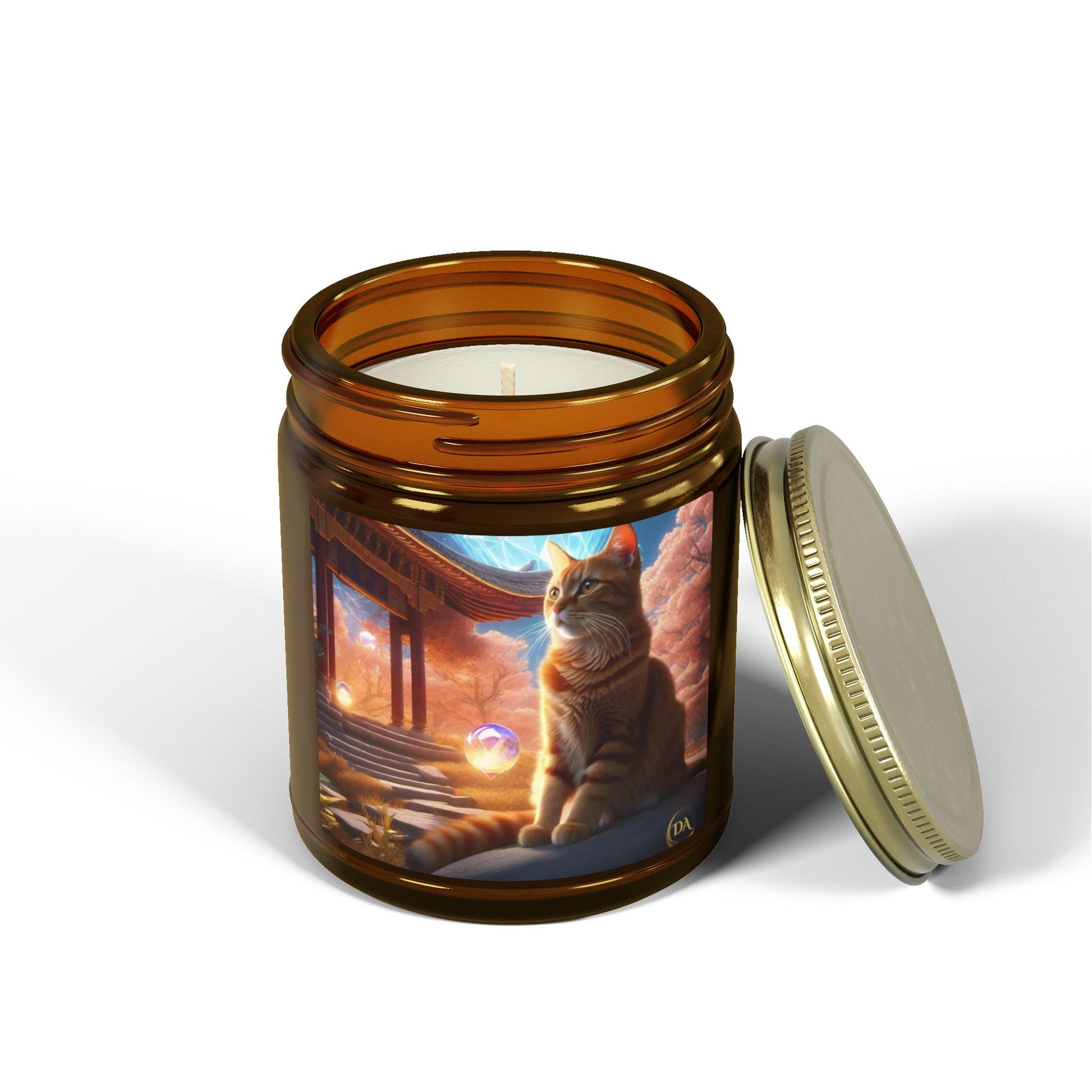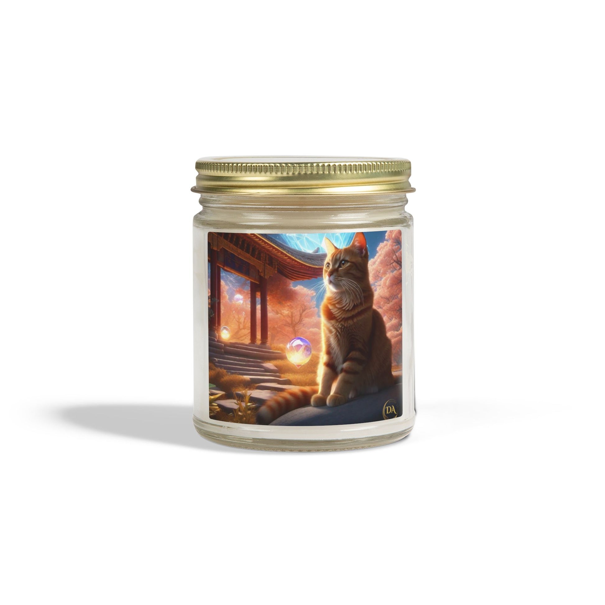 Premium Coconut Apricot Wax Scented Candles, Various Floral & Spice Fragrances (4oz), Spiritual Christmas Holiday Cat Lover Pet Gift, Ginger Tabby Cat Buddhist Diamond Sutra Temple Art, by Divine Arts