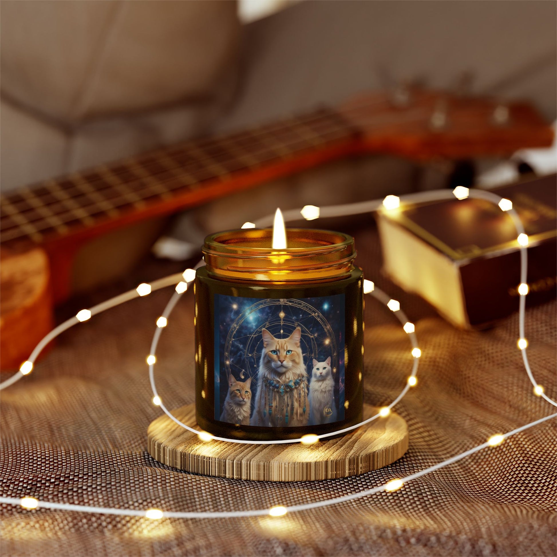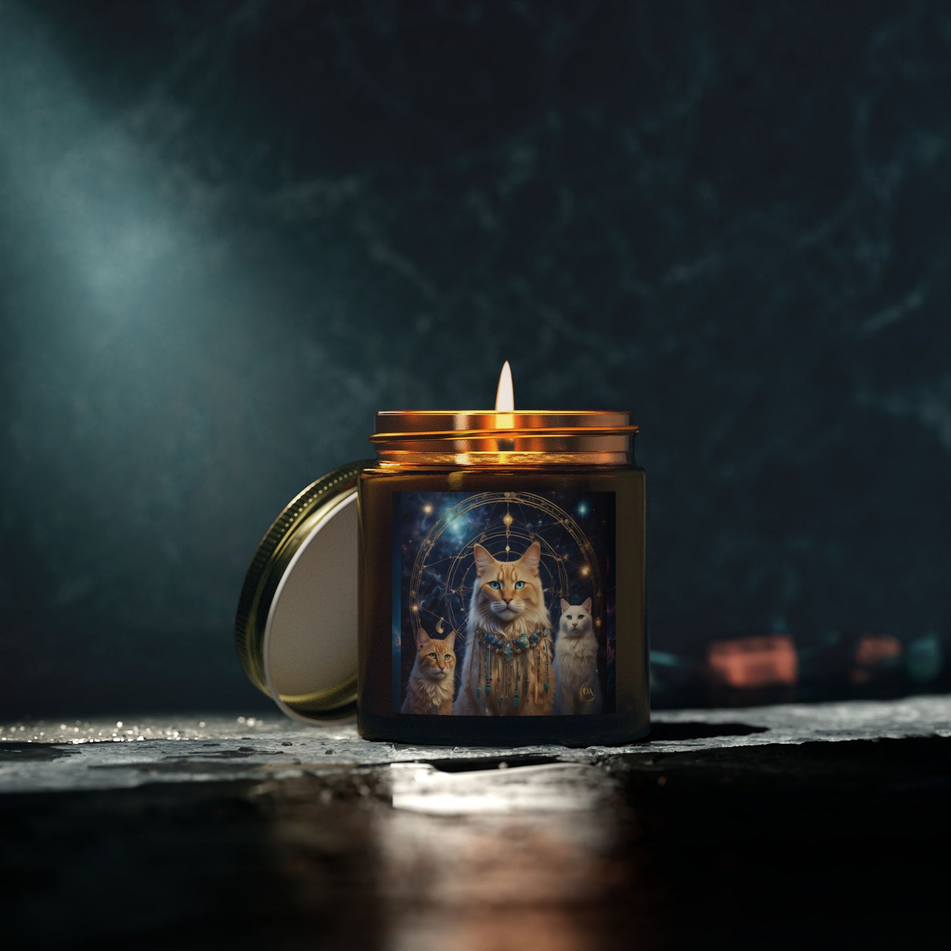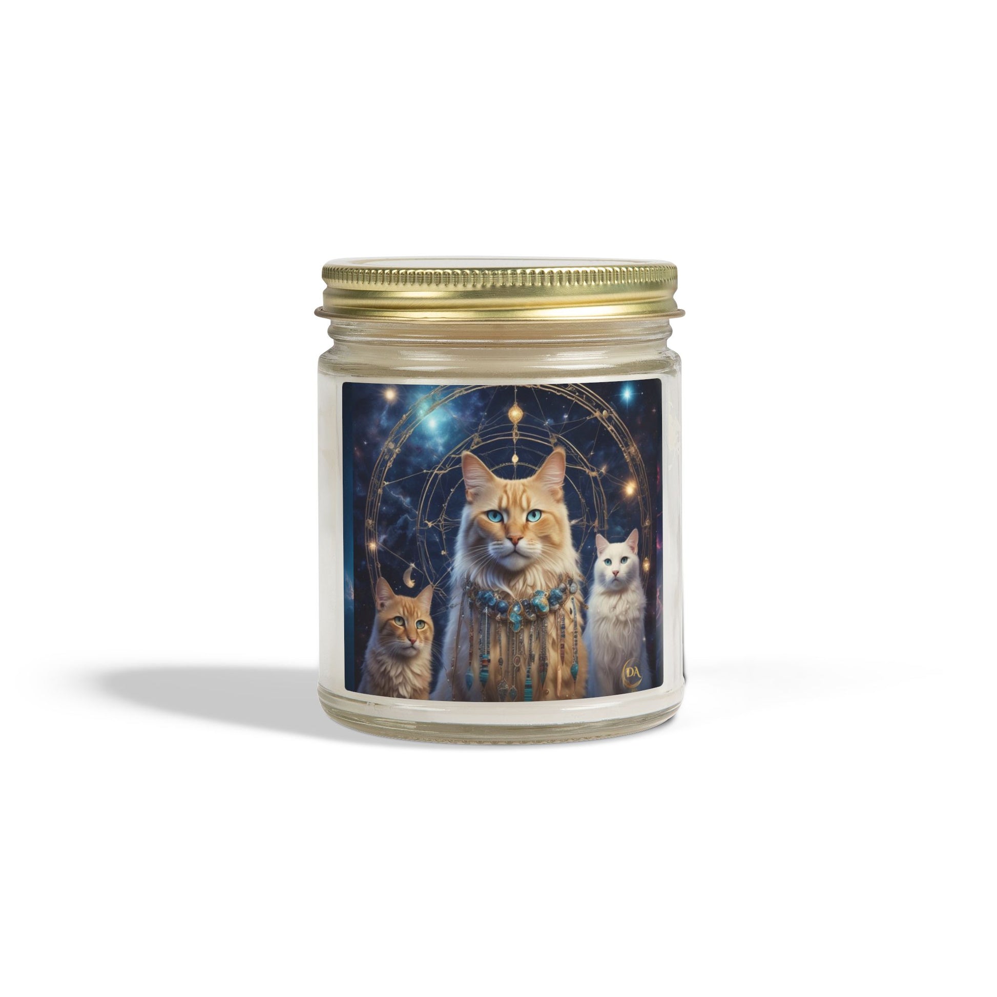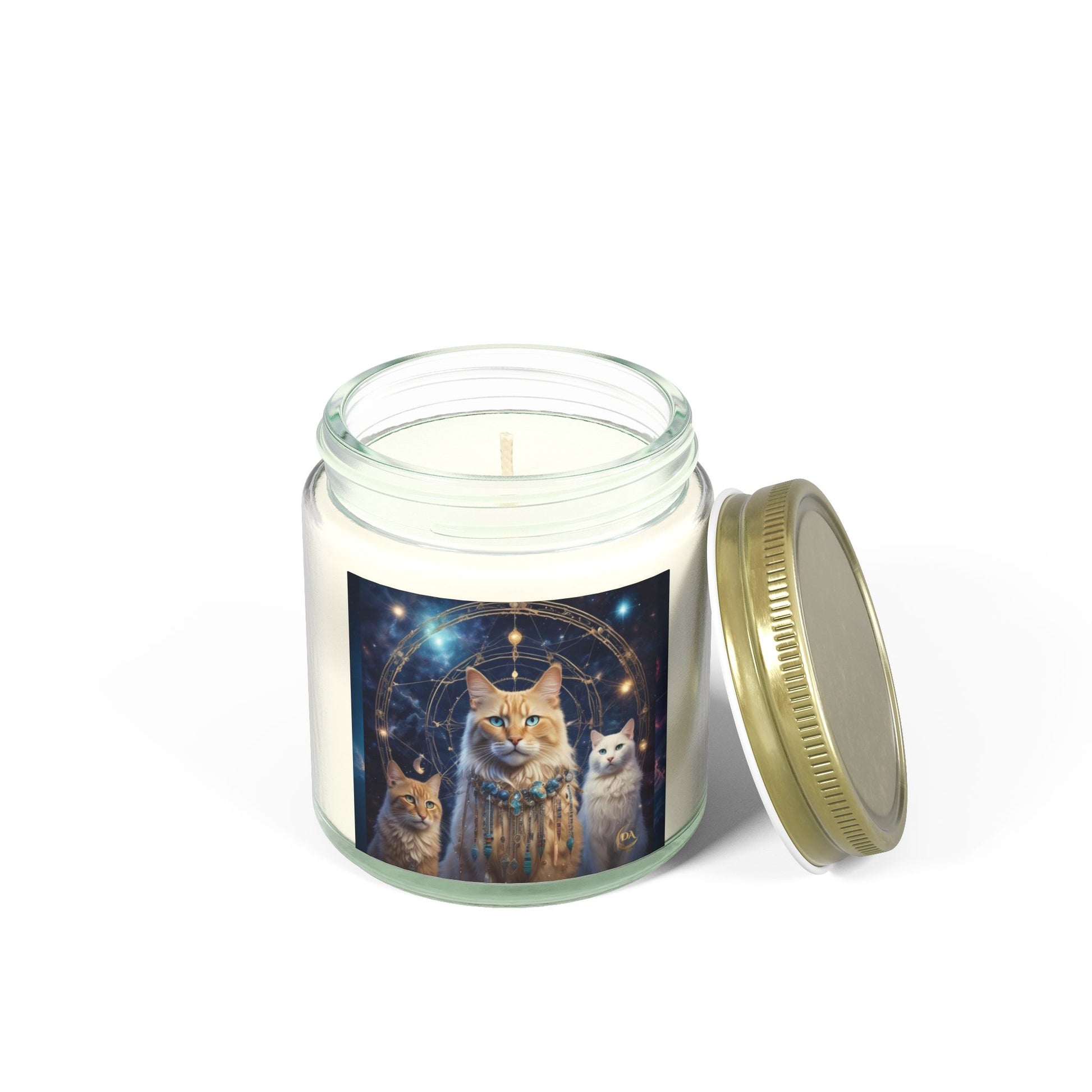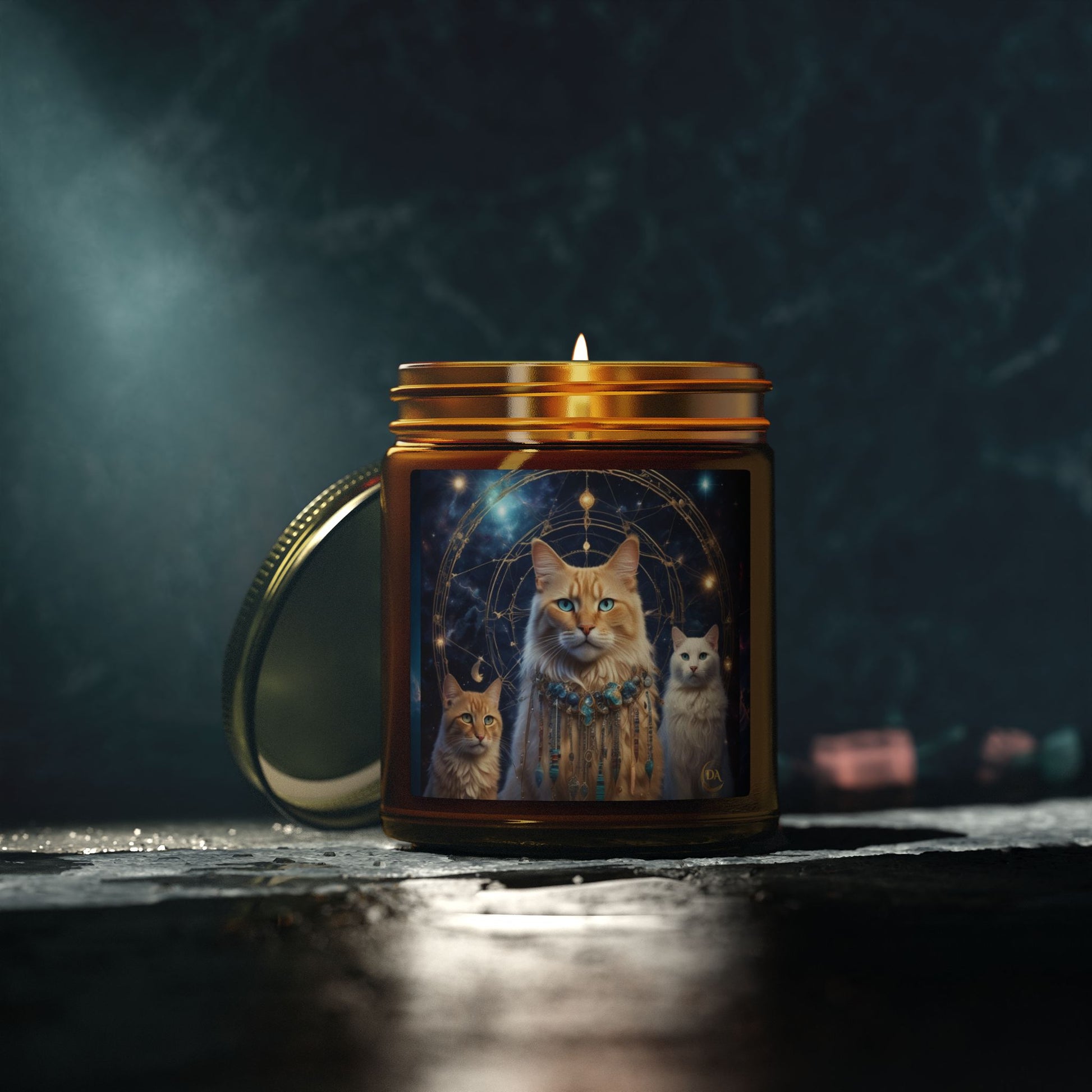 Premium Coconut Apricot Wax Scented Candles, Various Floral & Spice Fragrances (4oz), Spiritual Christmas Holiday Cat Lover Pet Gift, Ginger & White Cats Galaxy Space Fantasy Tribal Art, by Divine Arts