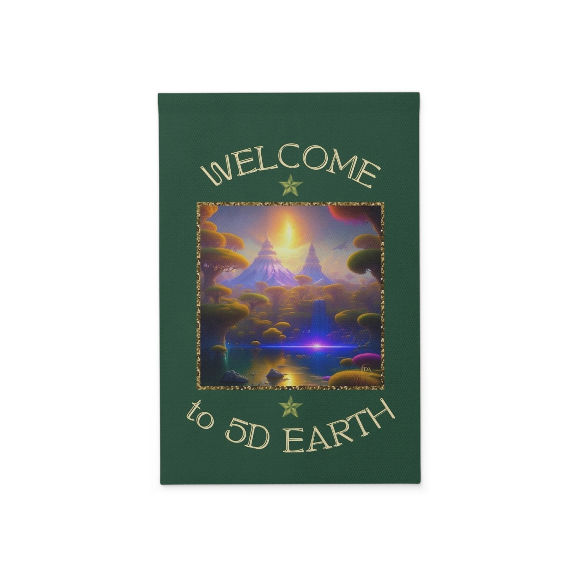 Turn your garden or any corner of your home into a rallying point and haven for Earth's ascension to the 5D crystalline timeline with this "Welcome to 5D Earth" banner.  This capstone timeless reminder is perfect for private gardens and yards, front porches and landings, next to benches on mailboxes, or posted in that "special" area that could use a light message boost.  Choose among various idyllic scenes of a natrual, lush, magenta, pink, lavendar and purple colored paradise where trees and bushes are delightfully nourished and chubby, waterfalls, lakes and rivers propser and abound and golden and blue palaces are nobly housed. 🌎💚✨