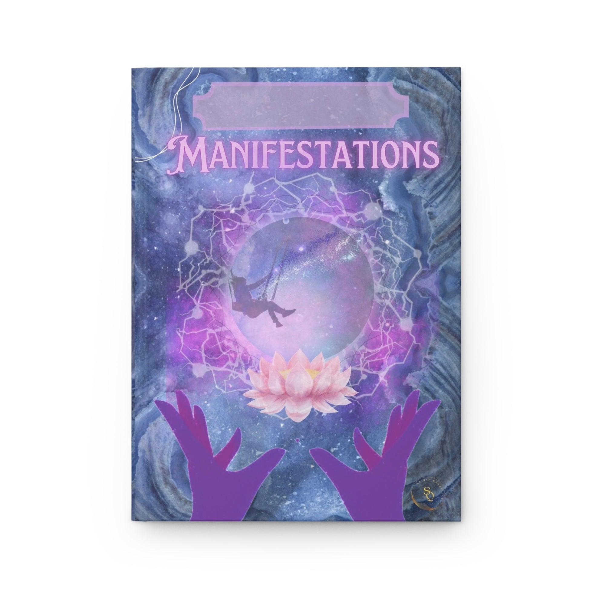 Divine Arts Hardcover Matte Laminate Coating Ruled Line Fantasy Violet Pink & Purple Divine Feminine Hands Levitating a Electrically Charged Crystal on a Pink Lotus with Gal Riding on a Space Swing Inside Manifestation Journal Stationery Notebook