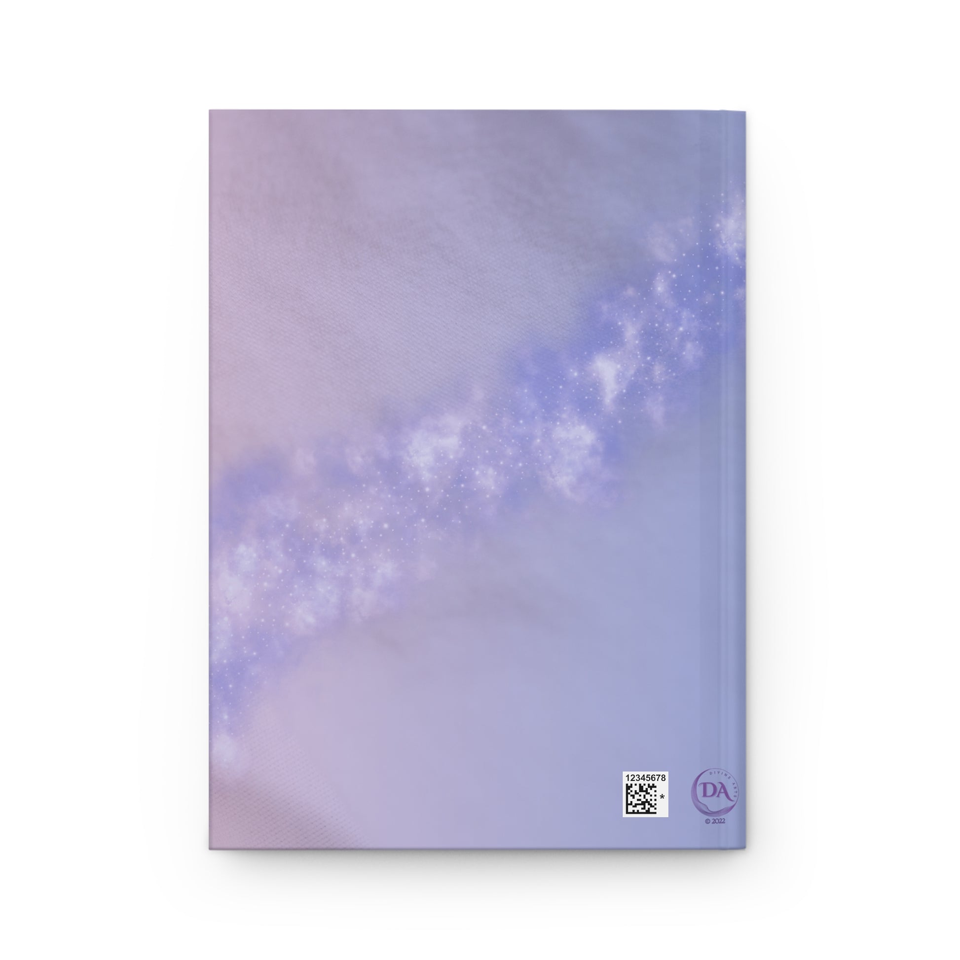 Divine Arts Hardcover Dream Journal Notebook Stationery Matte Laminate Coating Wraparound Art Ruled Line - Spiritual Fantasy Galaxy Art Purple Lavendar Cat Lover Starry Universe Cover Art
