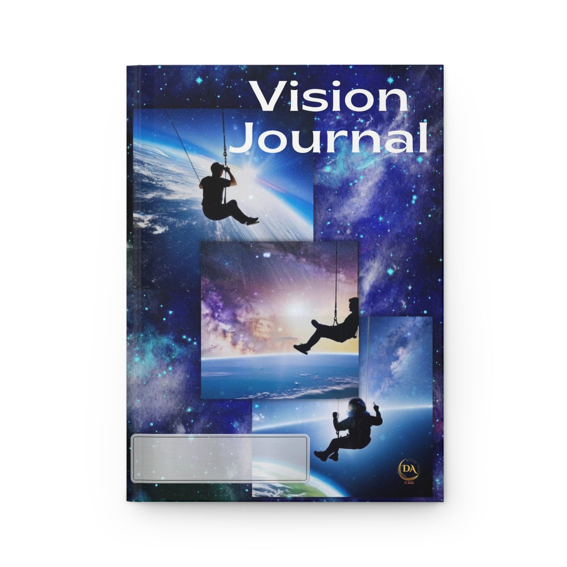 Divine Arts Hardcover Journal Notebook Stationery Matte Laminate Coating Ruled Line Wraparound Art - Fantasy Space Art with Silouhette of Young Man Swinging on a Space Swing Amidst Blue, Purple and White Nebulous Clouds and Stars Front and Back Cover