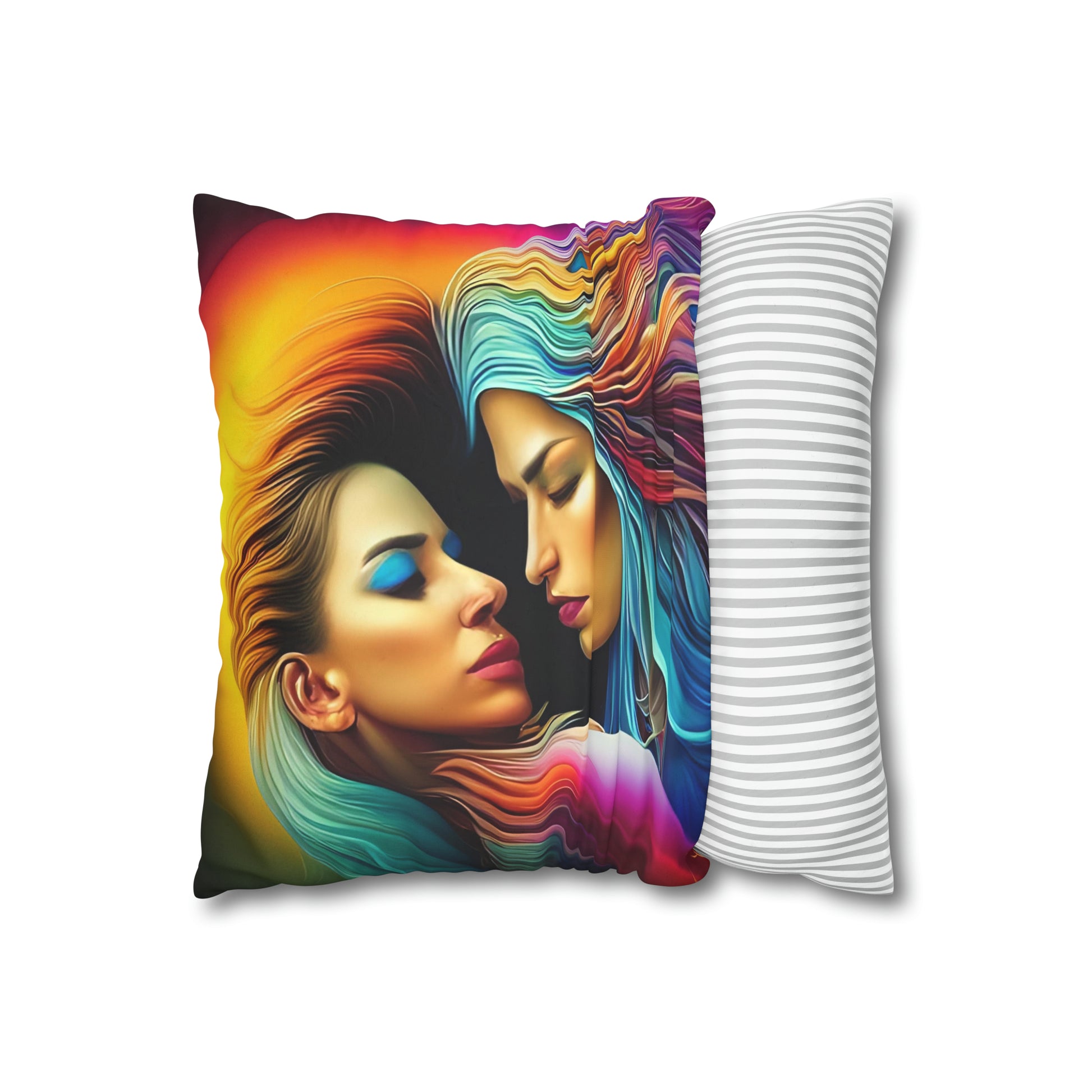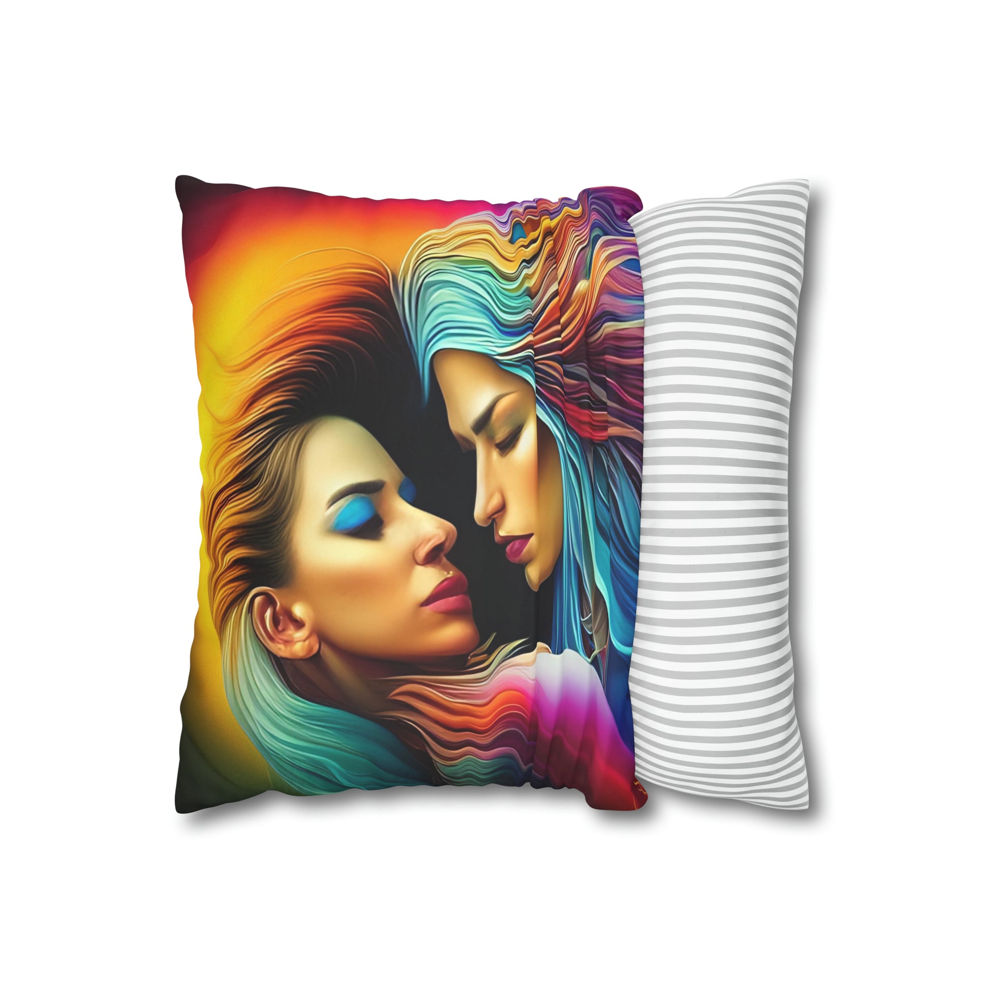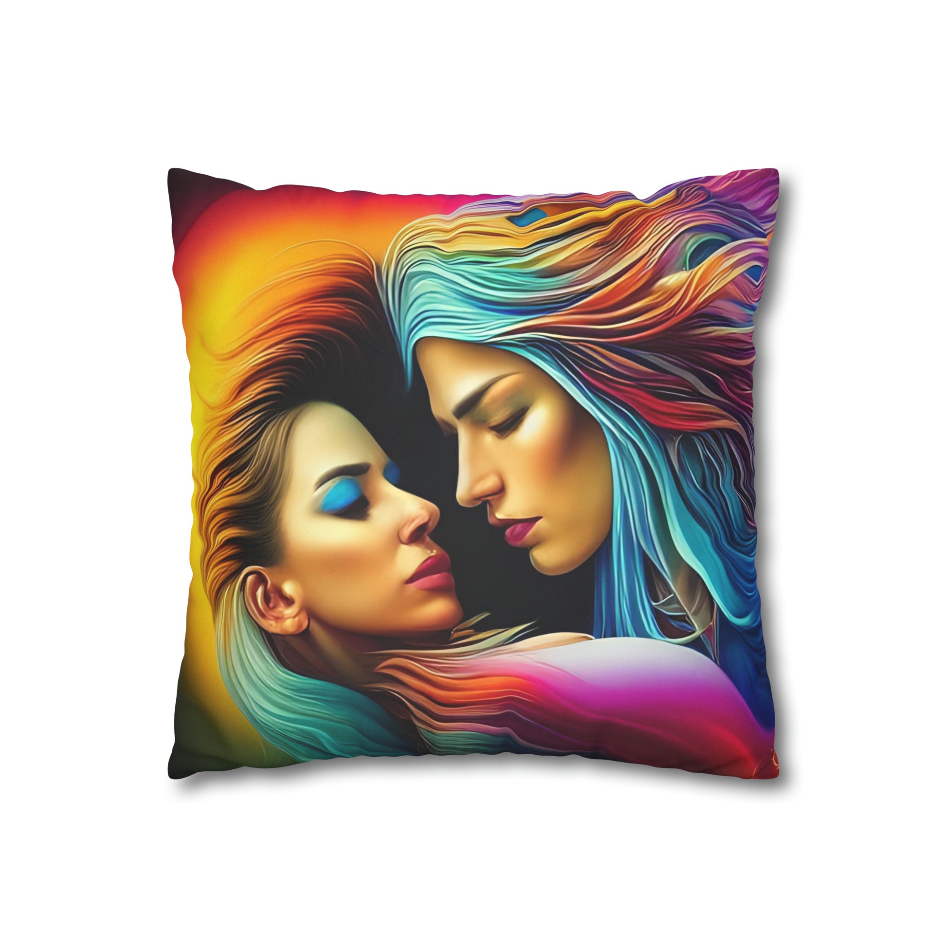 Divine Arts Psychedelic Fantasy Hierogamic Divine Union Kingdom Within Double-Sided Print Rainbow Colors Faux Suede Square Pillow Cover