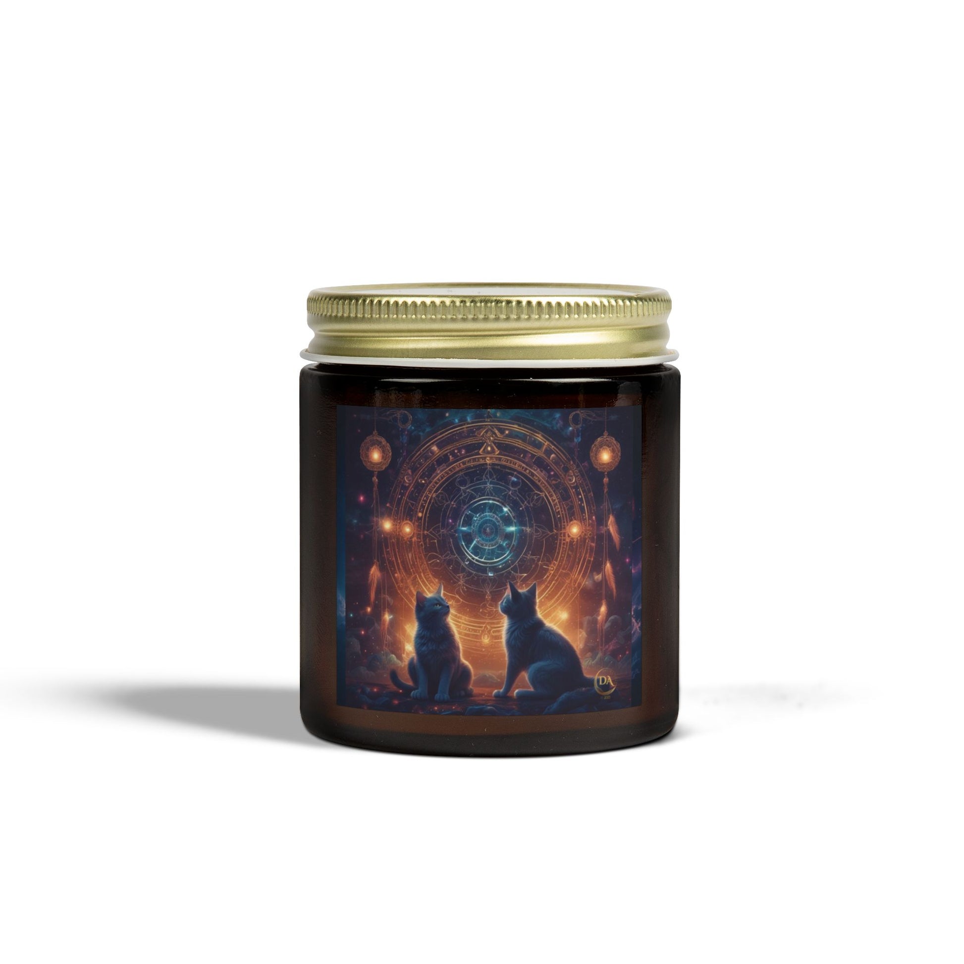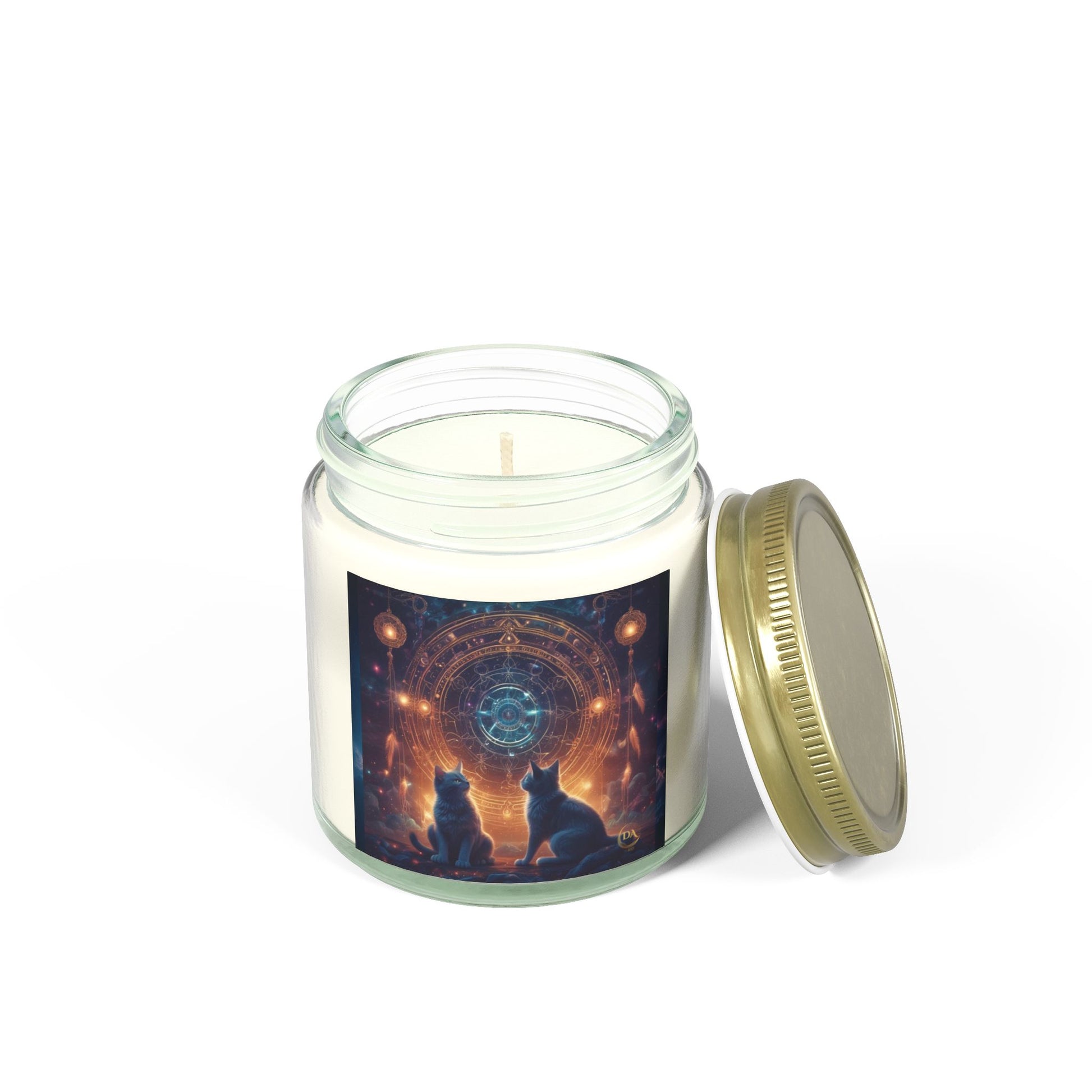 Premium Coconut Apricot Wax Scented Candles, Various Floral & Spice Fragrances (4oz), Spiritual Christmas Holiday Cat Lover Pet Gift, Black Cats Sacred Geometry Galaxy Space Fantasy Cat Art, by Divine Arts