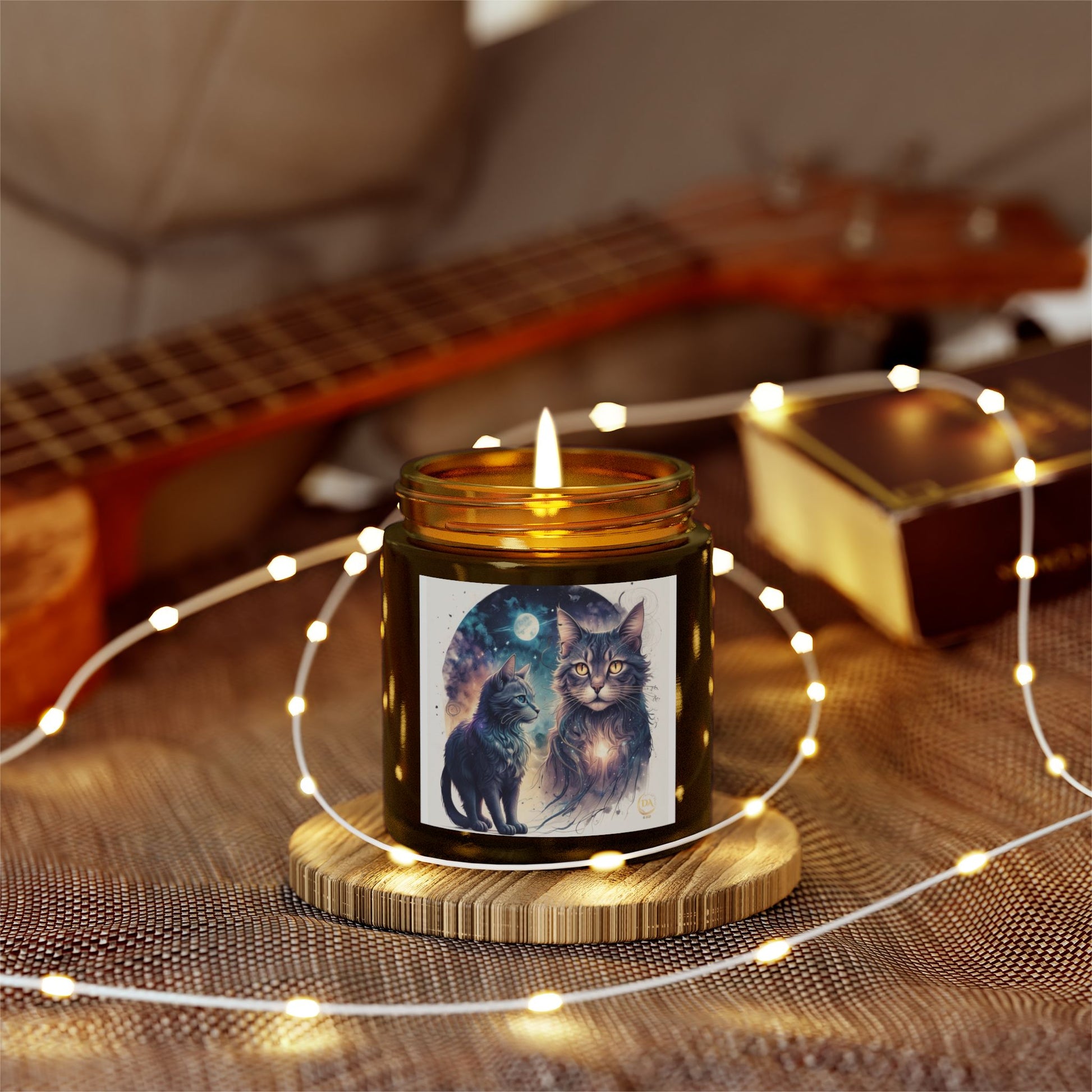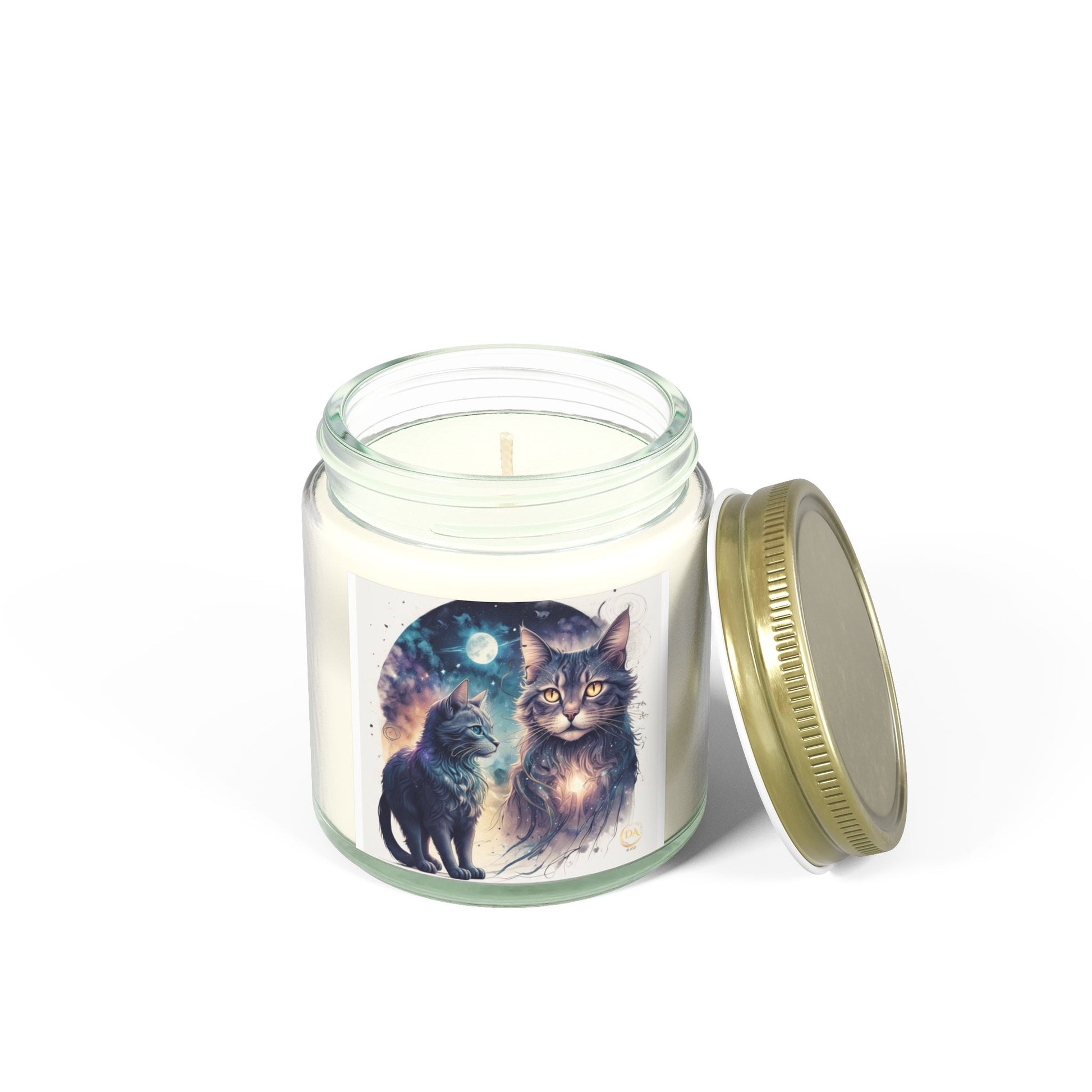 Premium Coconut Apricot Wax Scented Candles, Various Floral & Spice Fragrances (4oz), Spiritual Christmas Holiday Cat Lover Pet Gift, Ginger, White, Brown Tabby & Gray Cats Galaxy Space Fantasy Cat Art, by Divine Arts