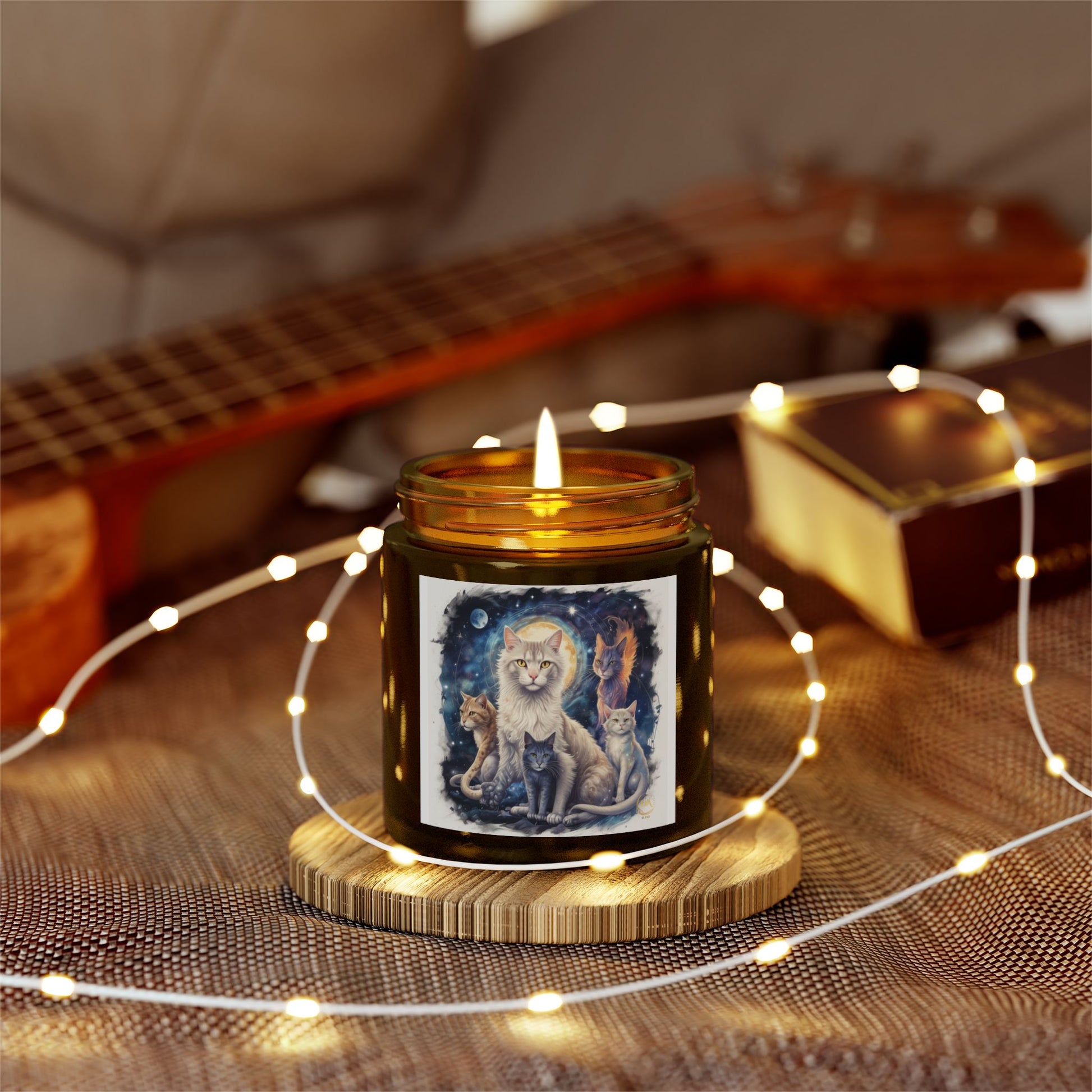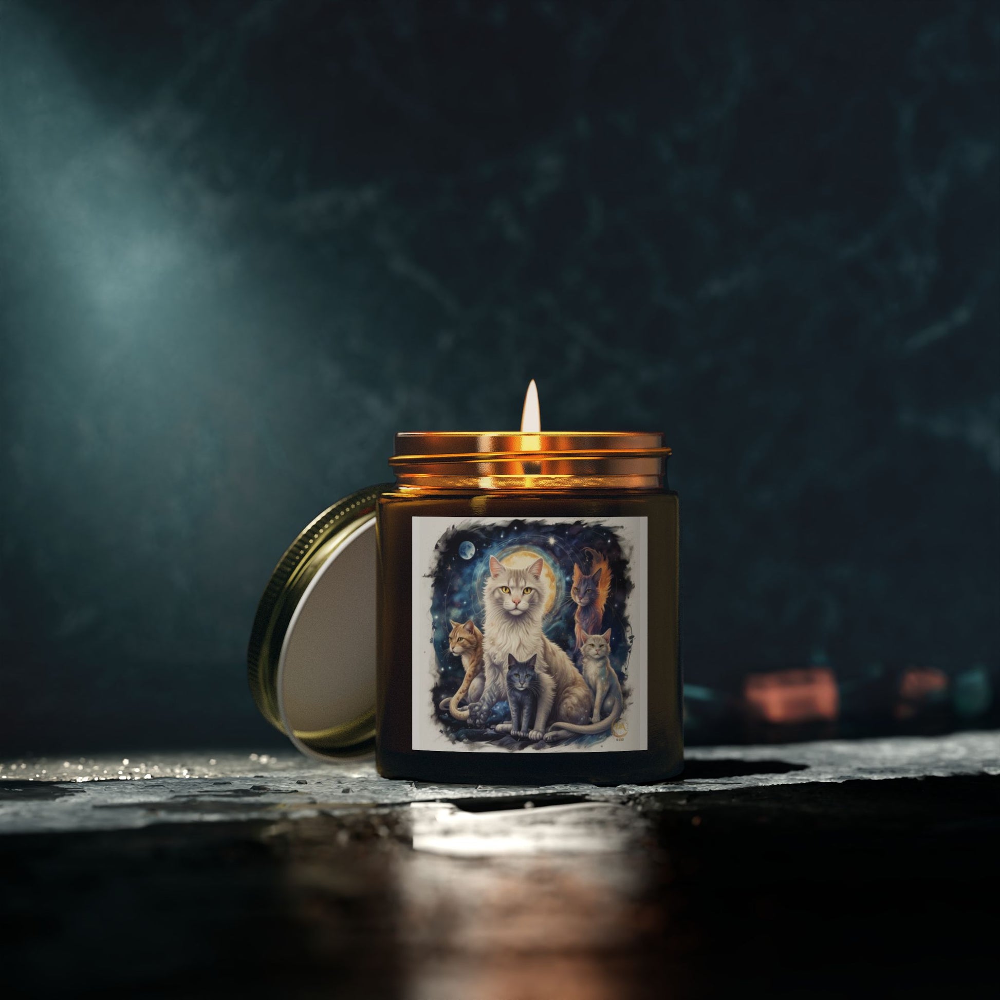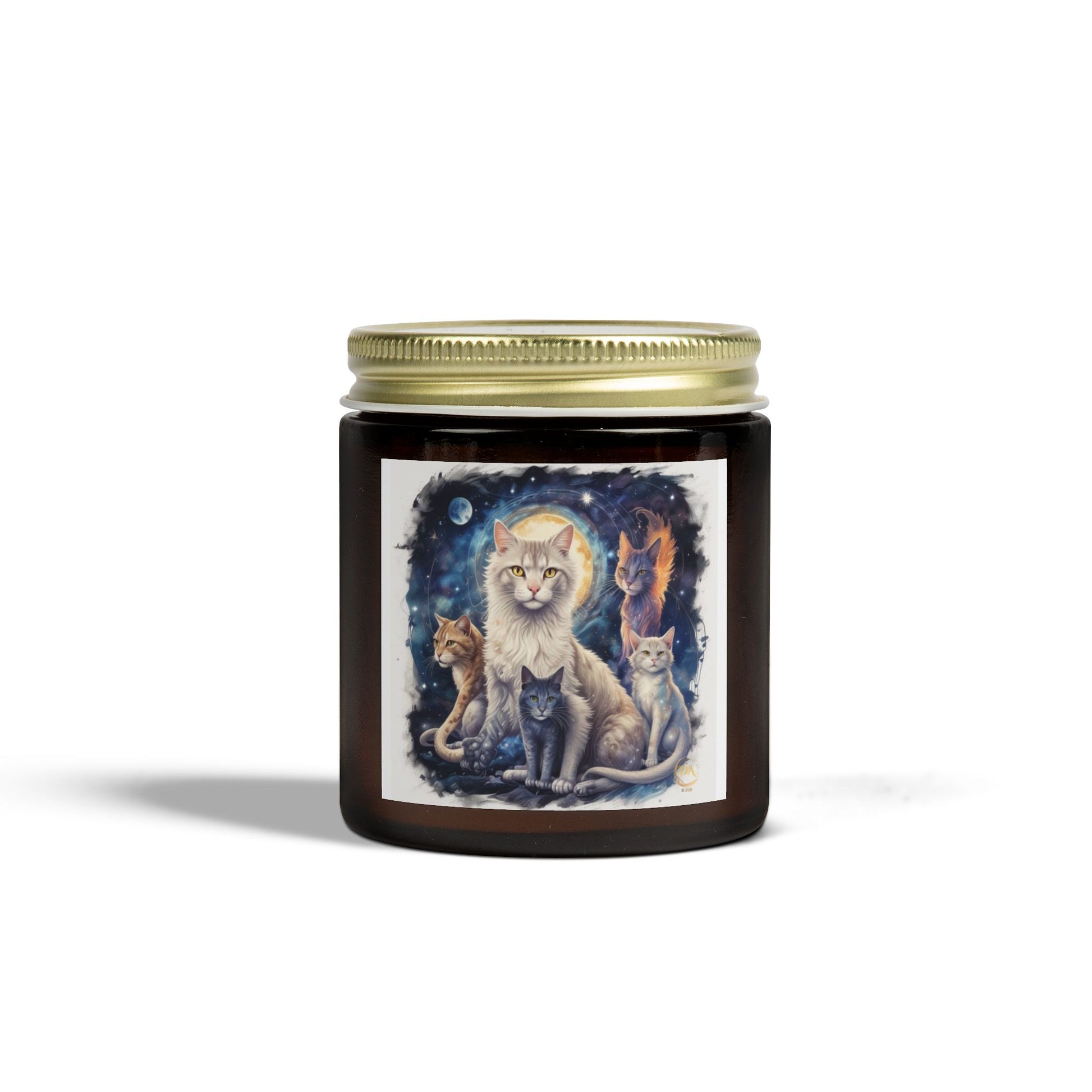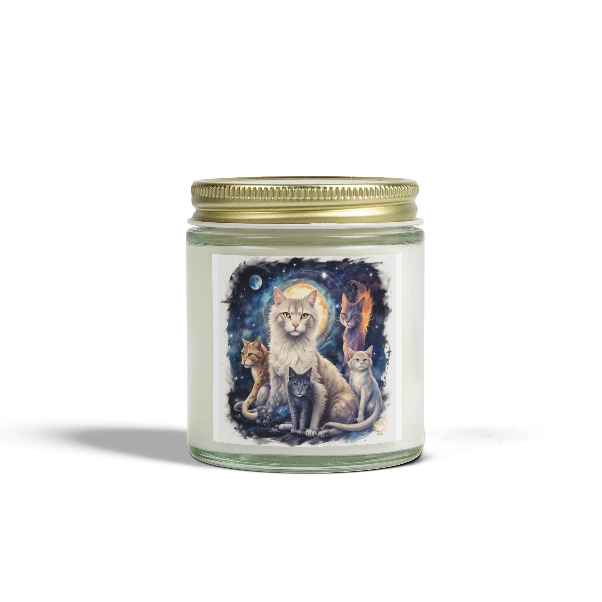 Premium Coconut Apricot Wax Scented Candles, Various Floral & Spice Fragrances (4oz), Spiritual Christmas Holiday Cat Lover Pet Gift, Ginger, White, Gray & Brown Cats Galaxy Space Fantasy Cat Art, by Divine Arts