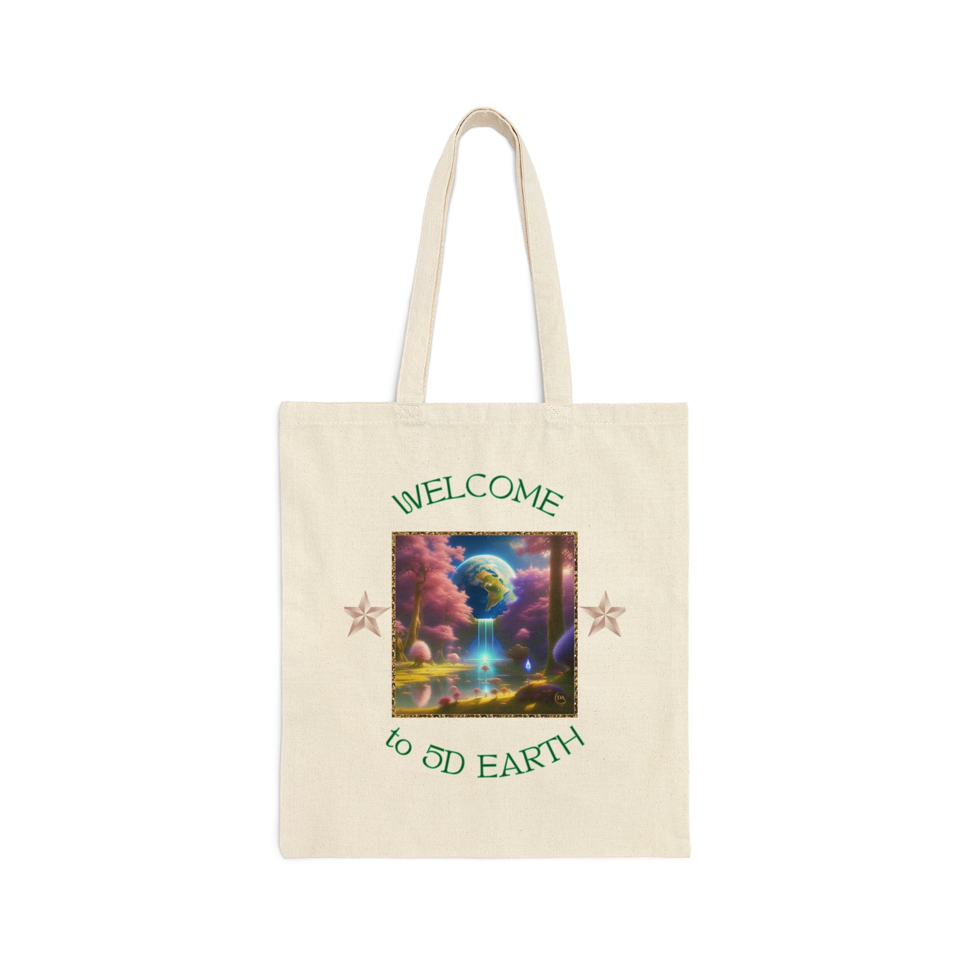 Divine Arts 100% Cotton Canvas Compact Lightweight Spiritual Fantasy Utopia Earth 5D Freedom Ascension Art Tote Bag