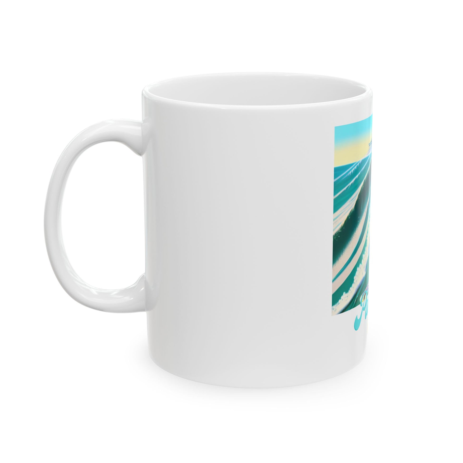 Catch the sunrise with a splash of surf and a dash of feline mischief. This glossy ceramic mug showcases a vibrant retro-style illustration of a surf-ready cat riding a turquoise waveโbright colors that pop and a playful โPaws Ten!โ vibe that brings a grin to every morning. Hold it by the comfortable C-handle as warm steam rises; the shiny finish makes the art feel like a small poster you can sip from. Durable white ceramic keeps the print prominent, and safe, everyday use is simple: microwave and dishwasher friendly, lead- and BPA-free. This mug fits into slow, salty mornings, quick office coffee runs, or cozy evenings where a little whimsy helps you unwind.